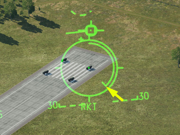 Im Spiel gibt es eine geführte Trainingsmission, die den Angriff von Bodenzielen mittels ungelenkten Raketen ausführlich erklärt.